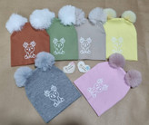 کلاه گرم پوم پوم ،گرم مناسب برای فصل پاییز و زمستان و بهار، مناسب از نوزادی تا یکسالگی : در رنگبندی:طوسی، کرم، زرد، پسته ی، قهواه ای،صورتی