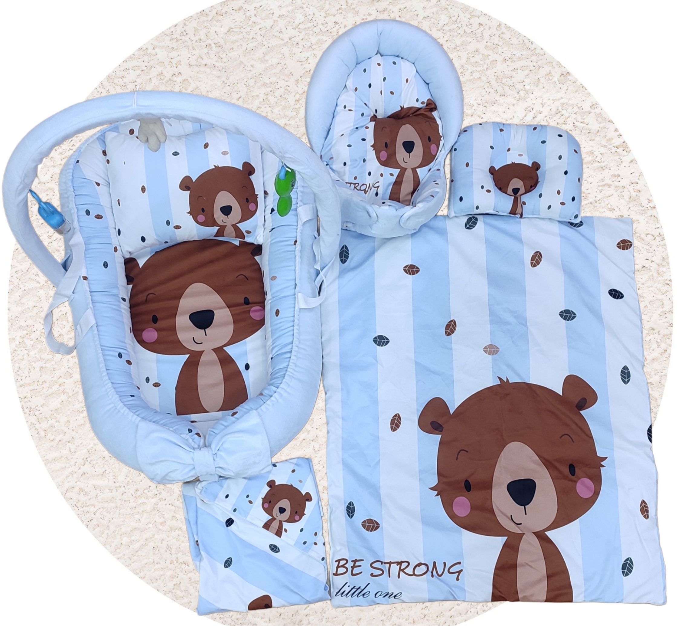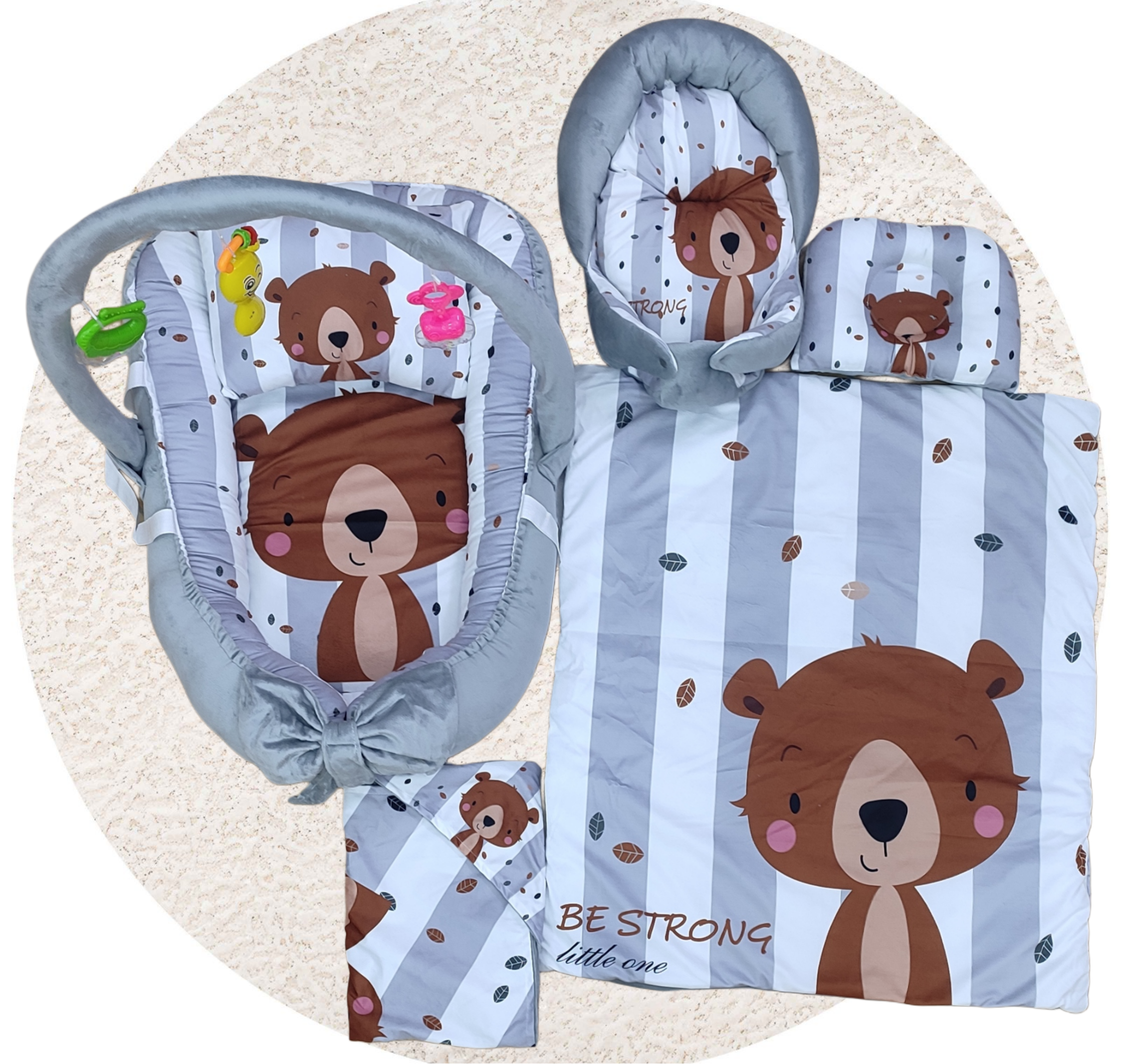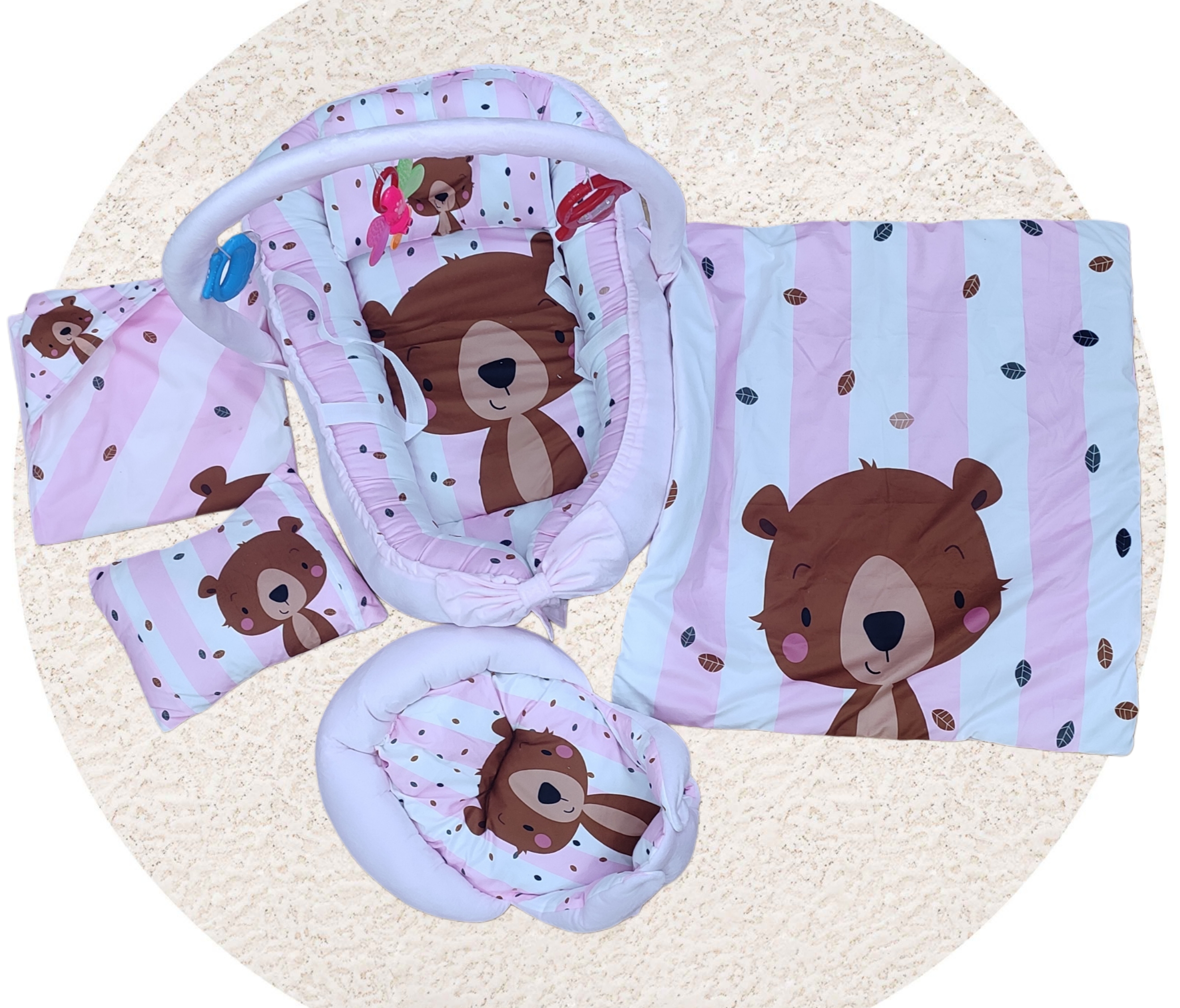 سرویس خواب7تیکه گاردار جنس مخمل اصلی شامل:تشک گاردار که تشک بازی هم میشه،پتو،بالشت فرمدهی،قنداق سویسی ،بالشت ساده،پتو دور پیچ، : جنس مخمل درجه یک که با الیاف پر شده بدونه حساسیت