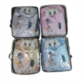 سرویس خواب 5تیکه مخمل درجه یک،شامل:قنداق فرهنگی، پتو،تشک،بالشت ساده، بالشت فرم دهی،طرح زرافه، جنس الیاف بدوته حساسیت : دارای چهار رنگ :طوسی، کرم، آبی، صورتی